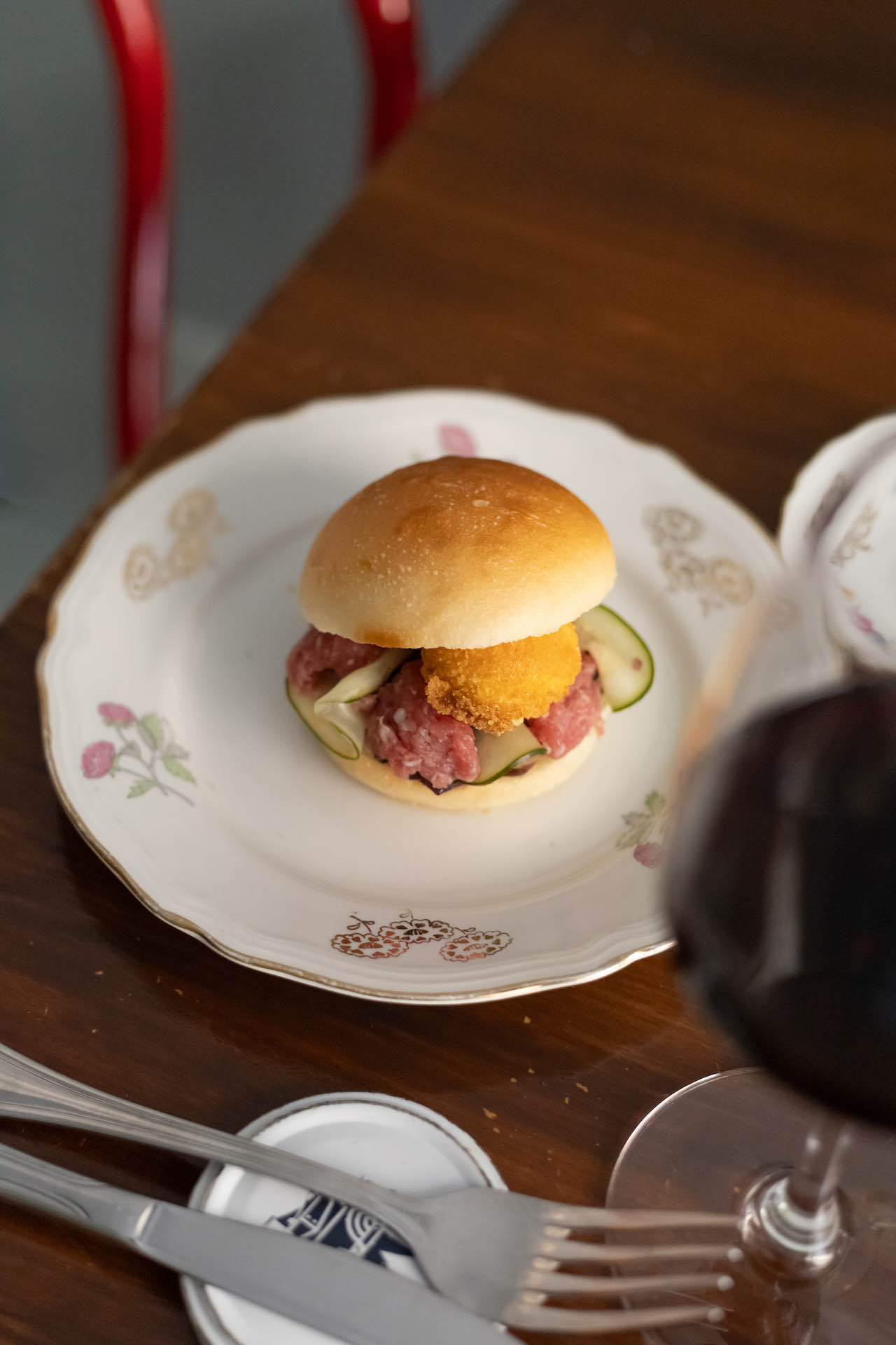 Combina suggestioni nostrane a elementi d’oltre oceano – terra di origine di Paul Newman – il bun con salsiccia di Bra, tuorlo d’uovo fritto, zucchine marinate e cipolle caramellate proposto da D’Amble Bostronomia Irriverente per la VII edizione di Salone OFF Food Topic. D’Amblè Bistonomia Irriverente. Via Claudio Luigi Bertholett, 23a – Torino. Tel. +39 0110606019.