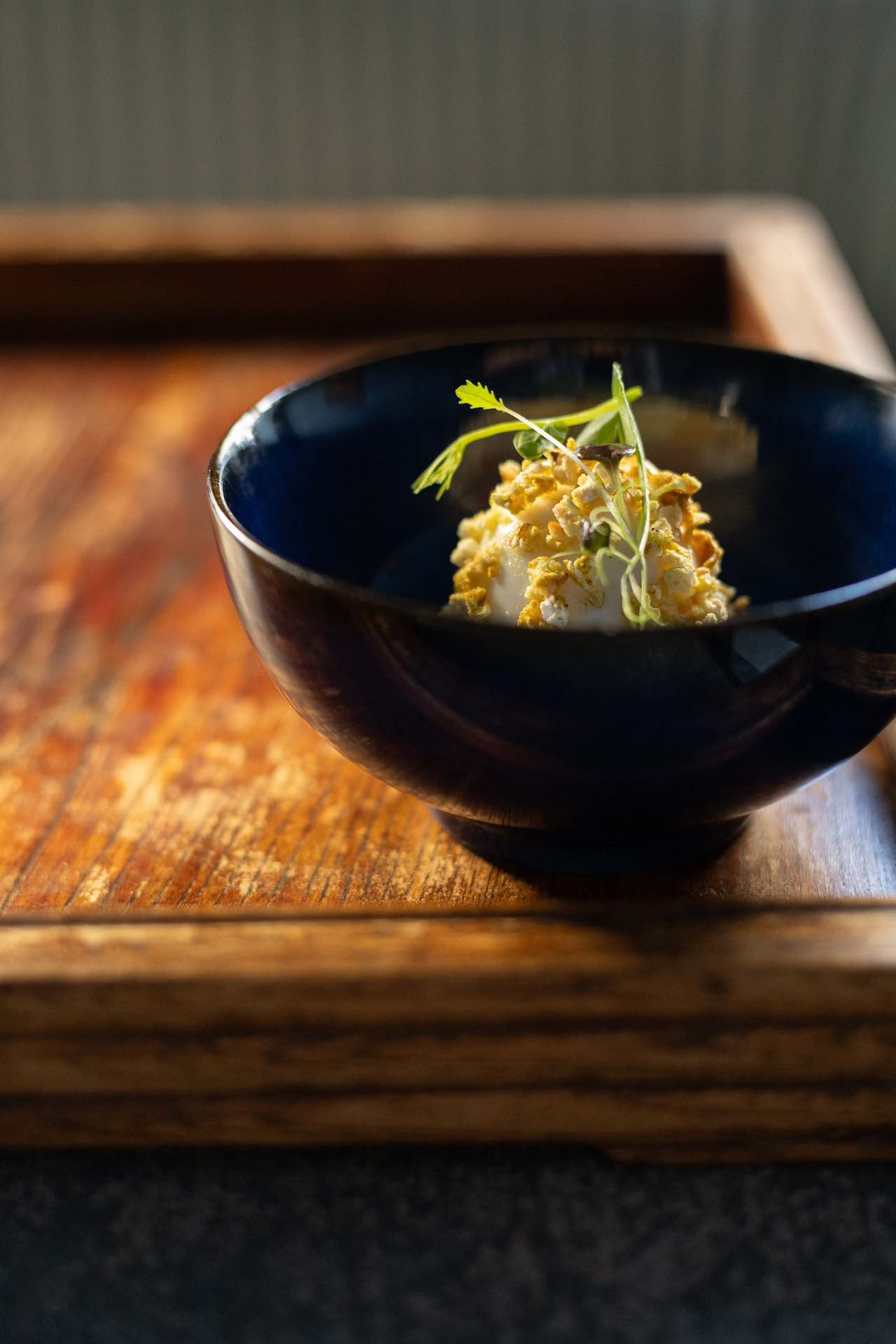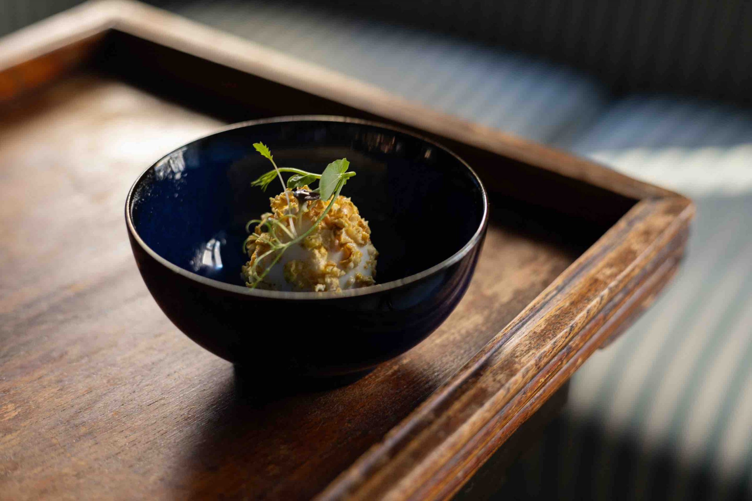 Per il piatto di Salone OFF Food Topic lo chef Daniele Santanera di Sciarada trae ispirazione dall’iconica scena delle uova divorate da Paul Newman nel film Nick Mano Fredda. Un uovo marinato in kefir e erbette impanato nel popcorn affumicato e speziato. Sciarada. Via Claudio Luigi Berthollet, 20d – Torino. Tel. +39 3409599722.